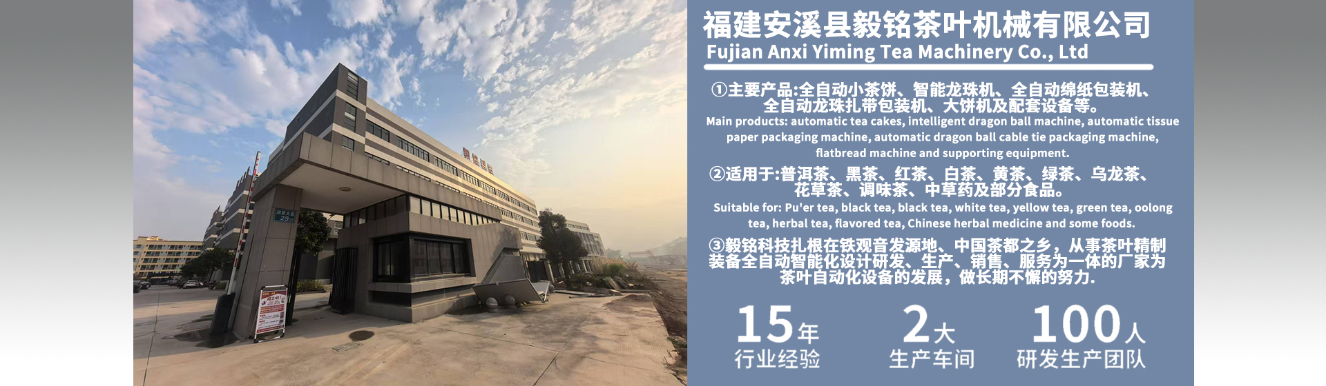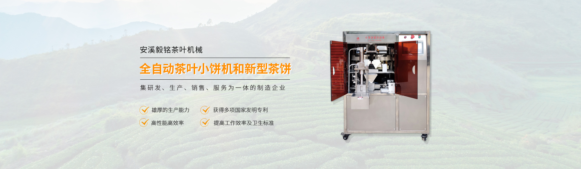 安溪縣毅銘茶葉機械有限公司成立于2010年,扎根在鐵觀音發源地、中國茶都之鄉,是一家從事茶葉精制裝備全自動智能化設計、研發、生產、銷售、服務為一體的國家高新技術企業,擁有國家授權專利30多項,設有茶葉精制加工機械壓制技術研發中心,擁有專業的設計研發團隊和規?;a基地。年產全自動智能化小餅機、龍珠機、包裝機、新型茶餅一體機等一系列茶葉精制裝備5000多臺套。自主研發創新的“毅銘”牌茶葉機械設備,設 ...